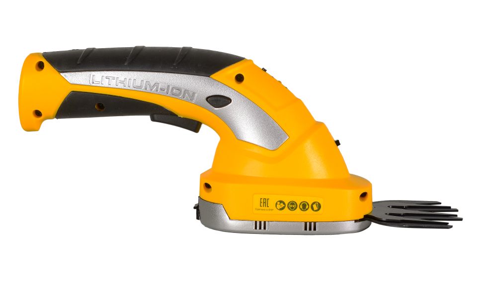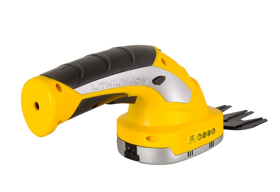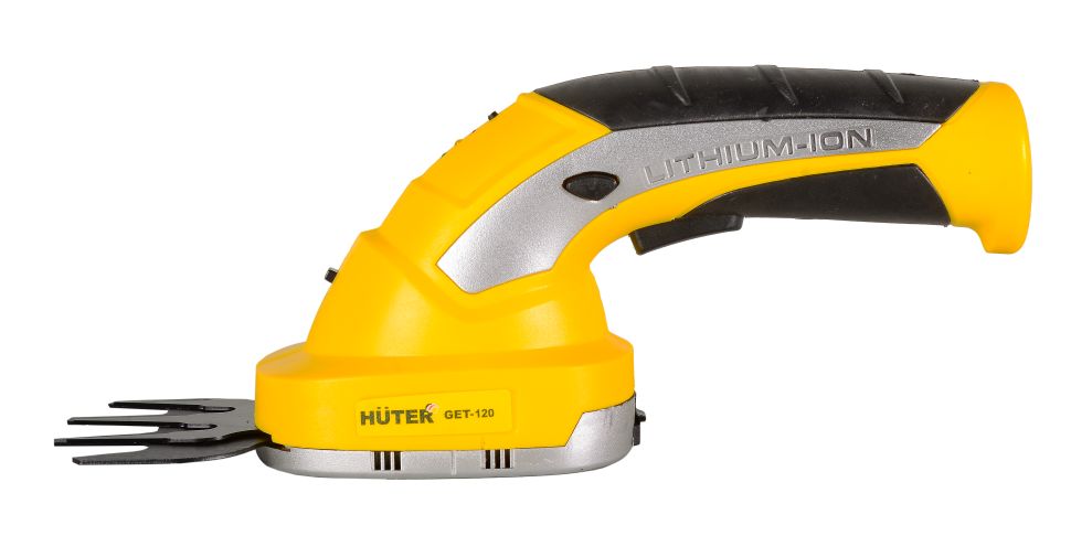 Триммер-кусторез Huter GET-120 — универсальный садовый инструмент, позволяющий без излишних усилий подстригать разросшиеся кусты и газонную траву на даче или приусадебном участке. В комплект прибора входит литий-ионный аккумулятор и два ножа (для кустов и травы). Аккумулятор дает возможность заниматься работами в любой точке сада без подзарядки. Каждый из ножей имеет по два лезвия, двигающиеся друг относительно друга. Нож для подрезки кустов двусторонний и позволяет подстригать маятниковыми движениями ветки растений толщиной до 8 мм. Нож для травы рассчитан на прямолинейные движения вдоль газона. Корпус аккумуляторного кустореза выполнен в виде овальной платформы с наклонной эргономичной ручкой. Платформа снабжена крышкой с фиксатором, под которую прочно крепится необходимое для работы лезвие. Рукоятка с резиновыми накладками исключает проскальзывание руки во время работы. Триммер-кусторез обладает небольшим весом - всего 1 кг. Достоинства аккумуляторного кустореза Huter GET-120: Не требует постоянного подключения к сети. Работает в двух режимах: стрижка кустов и подрезание травы. Замена лезвий без специального инструмента. Малый вес и простая конструкция.