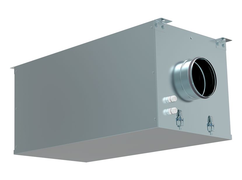 При необходимости в вентиляторный блок CAUF VIM может быть установлен электрический нагреватель серии EH/CAUF требуемой мощности (поставляется отдельно). Электронагреватель закрепляется при помощи специальной прижимной планки и 4 саморезов. Внутри вентиляторного блока предусмотрен разъем защищенный от ошибки при присоединении, в который подключается ответный штекер электронагревателя. Подключение питания электронагревателя осуществляется через клеммную коробку, расположенную на корпусе блока.