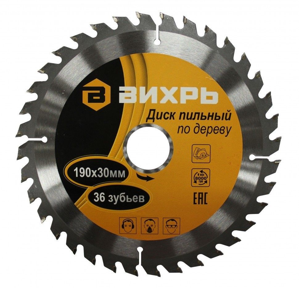 Читать все статьиДиск пильный по дереву ВИХРЬ 190х30мм, 36 зубьев