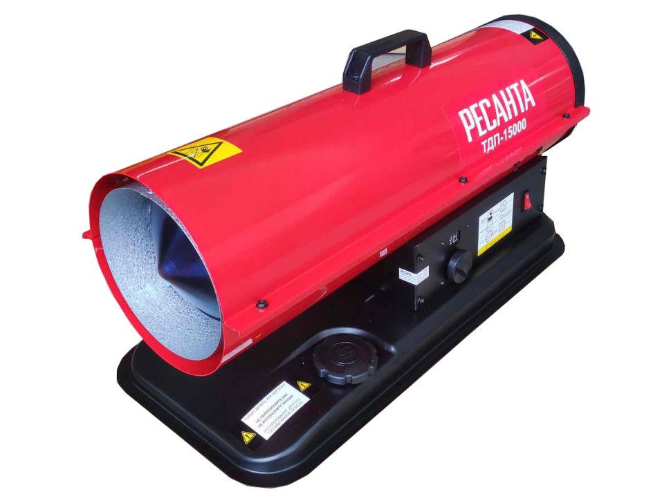 Дизельная тепловая пушка РЕСАНТА ТДП-15000 - функциональный обогреватель с прямым нагревом для отопления складских, строительных и других помещений. Тепловые пушки с прямым нагревом прогоняют воздушную массу непосредственно через горящее пламя, отдающее ей тепло, тем самым подавая в отапливаемую зону со всеми отходами, выделяемыми при горении дизельного топлива (солярки). Иными словами, дым, сажа и прочее попадают непосредственно в отапливаемую зону.Преимущества: 1. Такие обогреватели могут работать как на солярке, так и на отработанном масле или керосине, что еще больше увеличивает экономичность оборудования. 2. Мобильность. Дизельные пушки весят они немного: основную массу составляет бак с топливом, который может быть разного размера. Это дает возможность перевозить и устанавливать эти обогреватели в самых разных местах. 3. Мощность. Эффективность нагрева очень высокая. Можно подобрать соответствующую модель из очень большого модельного ряда, которая обеспечит максимальную эффективность при минимальных размерах устройства и затратах на его обслуживание. Особенно актуальным этот момент становится, когда необходимо быстро и достаточно сильно прогреть помещение, в котором ведутся ремонтные работы. В частности – установка натяжных потолков. Пушка прогреет воздух до нужной температуры, за считанные минуты. Высокая мобильность такого отопителя, позволит без труда занести его в комнату, а после убрать. И для этого не понадобится привлекать дополнительный персонал – все можно сделать силами тех мастеров, которые занимаются непосредственно монтажом покрытия. 4. Безопасность. Газовые пушки по этому параметру будут далеко не лидерами, а электрические обогревательные приборы требуют наличия электроснабжения. Так что, сложив все плюсы этих устройств, получим один из наиболее удобных и экономичных способов обогреть большую площадь. 5. Надежность. Обогреватели, использующие для нагрева солярку, практически не ломаются, а осуществить ремонт дизельных тепловых пушек значительно проще, чем, например, газового оборудования. Защита от угасания пламени и от воспламенения. Применение: 1. Наибольшее признание дизельные пушки Ресанта получили при обогреве складских, строительных и других помещений, где использование обычных видов отопления либо затруднено, либо попросту невозможно. Особенно актуально использование подобного оборудования там, где еще нет прямого подключения к электрическим сетям. Для работы тепловая дизельная пушка тоже расходует электричество, но его требуется совсем немного. Требуемую мощность вполне может обеспечить переносной генератор. 2. Основные требования к использованию различаются в зависимости от типа используемого оборудования. Если использовать пушки с прямым нагревом, должна осуществляться вентиляция отапливаемой зоны. Такие тепловые агрегаты обычно используют для локального обогрева полузакрытых или хорошо вентилируемых помещений. С обогревателями, в которых используется передача тепла непрямого типа, таких жестких требований нет, т...