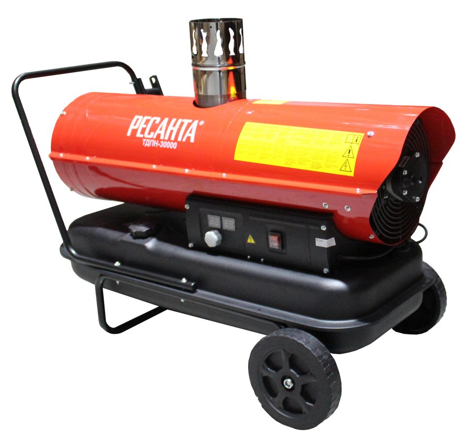Дизельная тепловая пушка РЕСАНТА ТДПН-30000 - функциональный обогреватель с непрямым нагревом для отопления складских, строительных и других помещений. При использовании непрямого нагрева воздух не смешивается с продуктами горения солярки. Для передачи тепла предусмотрен специальный теплообменник, который нагревает воздух. Сам теплообменник накаляется сгоревшим топливом, а все продукты горения, пройдя через него, уходят в смонтированную дымовую трубу. Это позволяет использовать подобные устройства для монтажа потолочных покрытий натяжного плана.Преимущества: 1. Такие обогреватели могут работать как на солярке, так и на отработанном масле или керосине, что еще больше увеличивает экономичность оборудования. 2. Мобильность. Дизельные пушки весят немного: основную массу составляет бак с топливом, который может быть разного размера. Это дает возможность перевозить и устанавливать эти обогреватели в самых разных местах. 3. Мощность. Эффективность нагрева очень высокая. Можно подобрать соответствующую модель из очень большого модельного ряда, которая обеспечит максимальную эффективность при минимальных размерах устройства и затратах на его обслуживание. Особенно актуальным этот момент становится, когда необходимо быстро и достаточно сильно прогреть помещение, в котором ведутся ремонтные работы. В частности – установка натяжных потолков. Пушка прогреет воздух до нужной температуры, за считанные минуты. Высокая мобильность такого отопителя, позволит без труда занести его в комнату, а после убрать. И для этого не понадобится привлекать дополнительный персонал – все можно сделать силами тех мастеров, которые занимаются непосредственно монтажом покрытия. 4. Безопасность. Газовые пушки по этому параметру будут далеко не лидерами, а электрические обогревательные приборы требуют наличия электроснабжения. Так что, сложив все плюсы этих устройств, получим один из наиболее удобных и экономичных способов обогреть большую площадь. 5. Надежность. Обогреватели, использующие для нагрева солярку, практически не ломаются, а осуществить ремонт дизельных тепловых пушек значительно проще, чем, например, газового оборудования. Защита от угасания пламени и от воспламенения. Применение: 1. Наибольшее признание дизельные пушки Ресанта получили при обогреве складских, строительных и других помещений, где использование обычных видов отопления либо затруднено, либо попросту невозможно. Особенно актуально использование подобного оборудования там, где еще нет прямого подключения к электрическим сетям. Для работы тепловая дизельная пушка тоже расходует электричество, но его требуется совсем немного. Требуемую мощность вполне может обеспечить переносной генератор. 2. Основные требования к использованию различаются в зависимости от типа используемого оборудования. Если использовать пушки с прямым нагревом, должна осуществляться вентиляция отапливаемой зоны. Такие тепловые агрегаты обычно используют для локального обогрева полузакрытых или хорошо вентилируемых помещений. С обогрева...