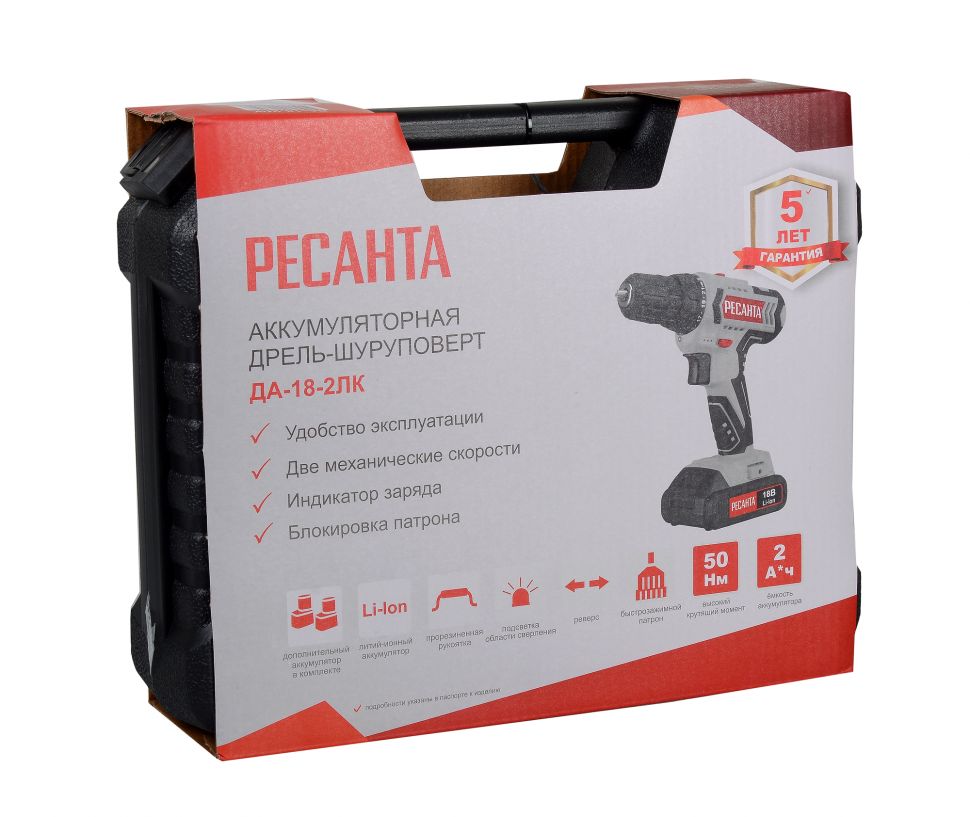 Читать все статьиДрель-шуруповерт аккумуляторная ДА-18-2ЛК Ресанта