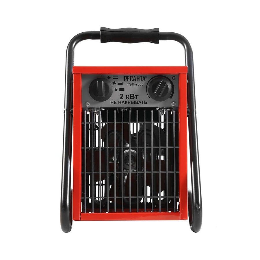Тепловая электрическая пушка РЕСАНТА ТЭП-2000 предназначена для вентиляции и обогрева жилых и производственных помещений, складов, гаражей, а также для обогрева и сушки в строительстве. Прибор относится к тепловым пушкам квадратного типа. Нагревательный элемент - трубчатый. Данная модель рассчитана на питание от электросети переменного тока частотой 50 Гц, номинальным напряжением 220-230В (однофазная). Устанавливается на полу.Обогреватель оснащен регулировкой режимов работы (мощности): Режим 1: 35 Вт ( В этом режиме работает только вентилятор. Функция обогрева отключена) Режим 2: 1000 Вт Режим 3: 2000 ВтФункциональные особенности: Терморегулятор – предназначен для регулировки температуры; Регулировка режимов работы – данная регулировка предназначена для выбора режимов работы; Режим выключения – данная функция предназначена для отключения режимов работы; Три режима работы (с выбором мощности)Важно: не накрывать и не ставить тепловую пушку на ковровые покрытия. Помещения должны быть сухими, с температурой от минус 10 до плюс 40°С.Комплектация: Электрическая пушка — 1 шт. Руководство по эксплуатации — 1 шт. Упаковка — 1 шт.
