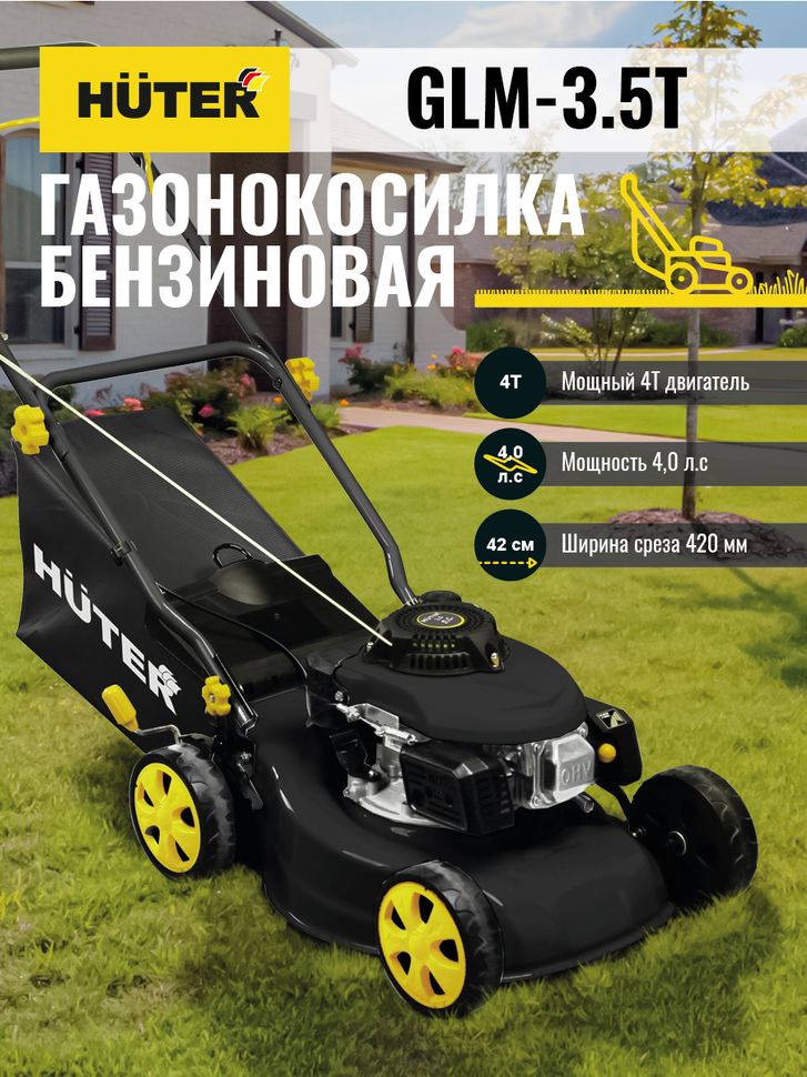 Читать все статьиГазонокосилка бензиновая HUTER GLM-3.5T