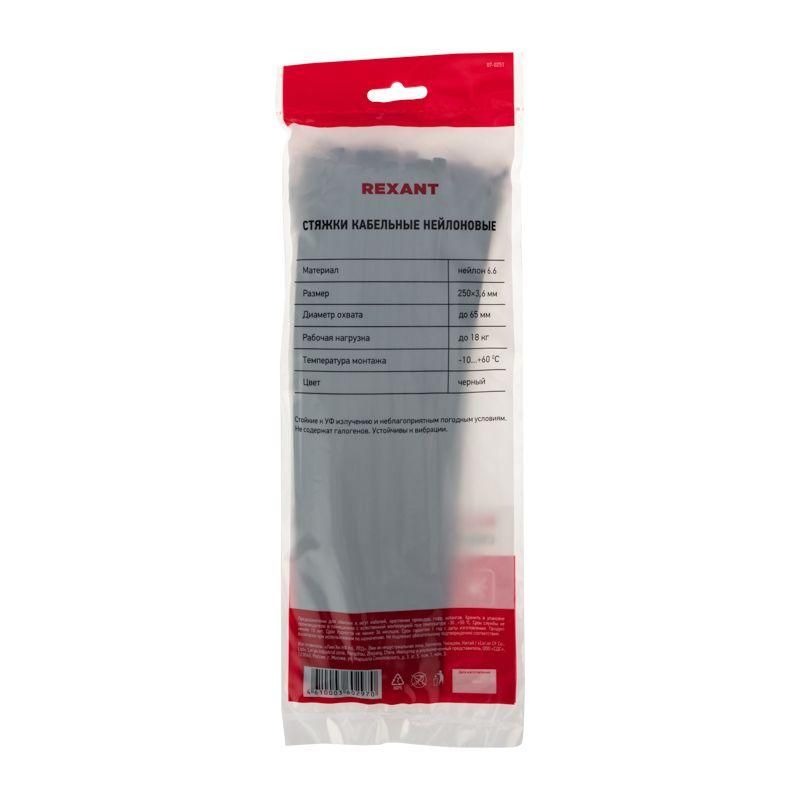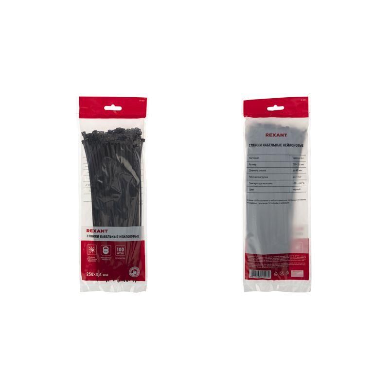 Читать все статьиХомут кабельный 3.6х250 нейл. черн. (уп.100шт) Rexant 07-0251
