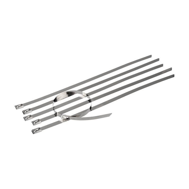 Стальной хомут REXANT – это надежный и универсальный крепеж, обеспечивающий крепкую фиксацию. Изделие предназначено для эксплуатации в агрессивных средах, при повышенной вибрации, влажности, радиации и экстремальных перепадах температур. Подходит для применения в разных отраслях. Стальной хомут является альтернативой металлической ленте. Изделие может без труда справиться с задачами, которые невозможно выполнить с помощью нейлоновой стяжки. Хомут изготовлен из нержавеющей стали AISI 304: обладает высокой прочностью, долговечностью, не подвержен коррозии, а также отличается огнестойкостью, благодаря чему подходит для монтажа ОКЛ (огнестойких кабельных линий). Изделие представляет собой неразъемный крепеж одноразового использования, что обеспечивает надежную и безопасную фиксацию без риска случайного отсоединения. Одноразовый зажим производится за счет шарикового механизма. В упаковке поставляются 50 стяжек размером 300x4,6 мм. Установка хомутов может выполняться с помощью специального монтажного инструмента (арт. 12-4522).
