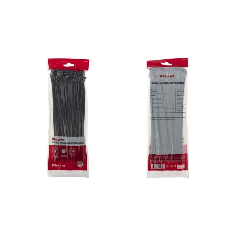 Читать все статьиХомут кабельный 4.8х250 нейл. черн. (уп.100шт) Rexant 07-0251-5