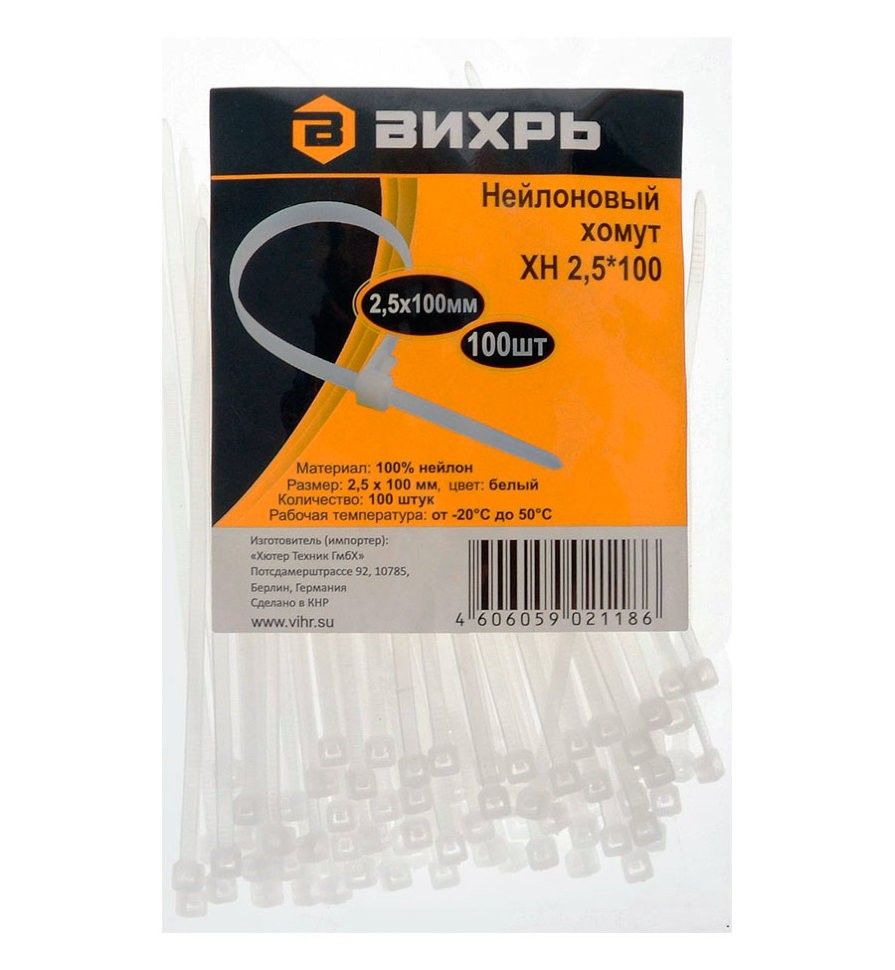 Читать все статьиХомут нейлоновый ВИХРЬ 2,5*100 Б