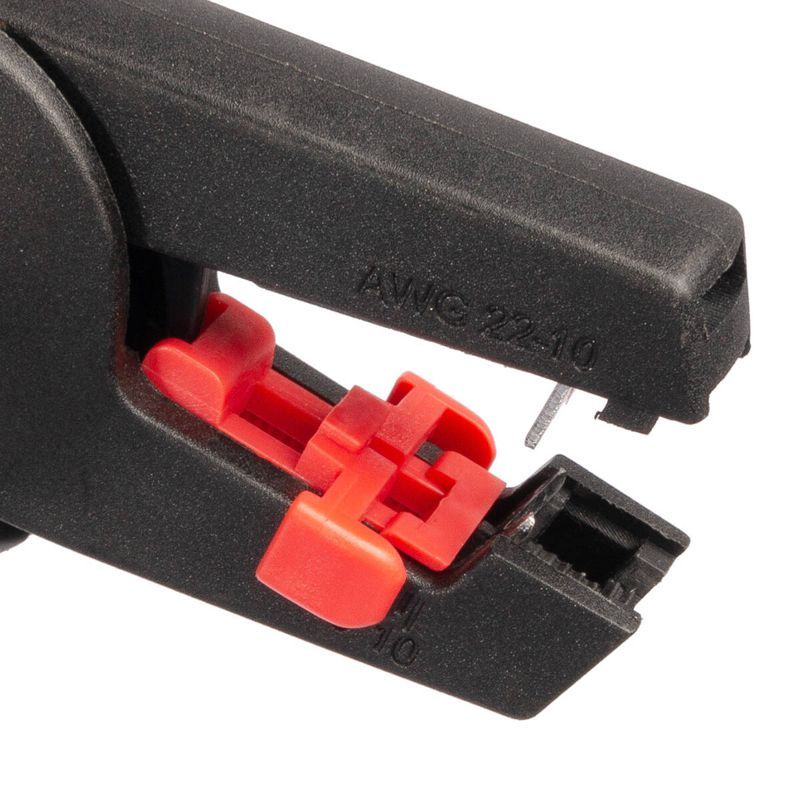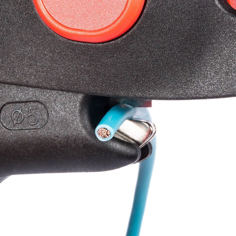 • 3 в 1: • снятие изоляции с проводов: • проводники 1 класса гибкости: 0.5–4.0 мм2 • проводники 5 класса гибкости: 0.5–6.0 мм2 • опрессовка втулочных наконечников от 0.25–2.5 мм2 • резка проводов ? до 4.0 мм • V-образные лезвия • Торцевой стриппер пистолетного типа • Встроенный ограничитель длины снятия изоляции • Автоматическая настройка на нужный размер и толщину изоляции провода • Благодаря встроенному блокиратору рукояток, инструмент компактно складывается для хранения и переноски • Рекомендуется для зачистки коротких выводов проводов и для работ в ограниченном пространстве: распределительных коробках, электротехнических щитах и т.п. • Эргономичный инструмент в прочном нейлоновом корпусе, армированном стекловолокном • Легкий и компактный инструмент для снятия изоляции • Вес: 120 г • Длина: 165 мм