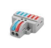 • Универсальные изолированные клеммы для ответвления любых типов медных проводников: моножильных и многожильных тонкопроволочных • Клеммы имеют монтажную площадку, позволяющую устанавливать клемму на плоскую поверхность или в монтажную коробку • Зажим проводов в клемме осуществляется при помощи рычагов • Наличие специального паза в корпусе клеммы для размещения рычага в закрытом положении надежно предотвращает случайное отсоединение проводника • Возможность измерения электрических параметров цепи без разбора и нарушения изоляции соединения • Безопасность и порядок в распределительной коробке • Максимальное напряжение: 450 В