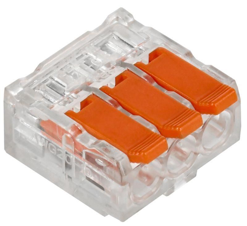 Клемма строительно-монтажная серии 221 предназначена для соединения одножильных и многожильных медных проводников без использования инструмента в электрических сетях переменного и постоянного тока. Клемма допускает многократное присоединение и отсоединение проводников. Количество подключаемых проводников - 3.