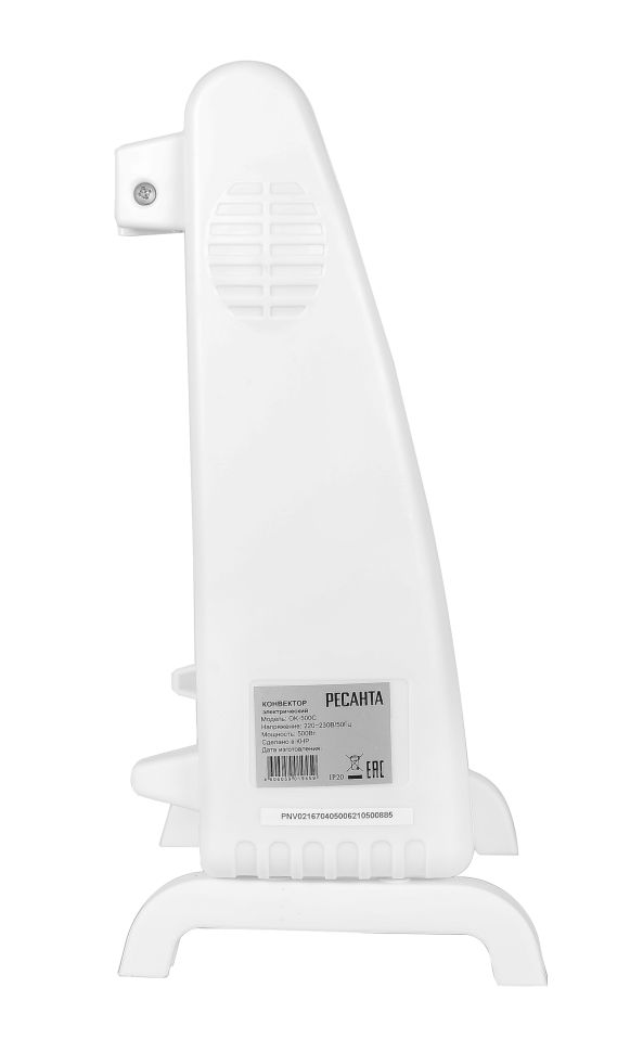 Электрический конвектор РЕСАНТА ОК-500С для обогрева помещений. Состоит из нагревательной части (СТИЧ), заключенной в нижней части корпуса со щелеобразными отверстиями снизу и жалюзи в верхней части. Данная конструкция даёт возможность воздуху беспрепятственно проходить внутри конвектора, Модели конвекторов Ресанта серии СОтличием данной серии конвекторов от остальных серий является вид используемого нагревательного элемента (СТИЧ). При аналогичной мощности СТИЧ элемент меньше и легче ТЭНа, поэтому преимущества данной серии - компактный размер и меньший вес. В этих конвекторах используется нагревательный элемент, известный как игольчатый, ленточный или типа СТИЧ (от английского слова STITCH - шить, стегать), представляет собой тонкую пластину (ленту) из диэлектрического материала, густо прошитую хром-никелевой нитью, которая с обеих сторон образует петли. Игольчатый нагреватель характеризуется минимальной тепловой инерцией – нагревается и остывает практически моментально.Преимущества конвекторов Ресанта Простые и эффективные возможности управления температурным режимом. Быстрая самоокупаемость за счёт высокого КПД и скорости набора задаваемой температуры. Простота установки. Не выжигают кислород. Надёжность в эксплуатации. Лёгкость обслуживания. Эффективное использование электроэнергии. Бесшумная работа. Высокий уровень комфорта. Корпус греется максимум на 60 градусов, что делает его безопасным для прикосновений. Возможность установки во влажных помещениях (кроме серии «С»). Комплектация: Конвектор - 1 шт. Опоры - 2 шт. Руководство по эксплуатации - 1 шт. Комплект для крепления на стену – 1 шт.