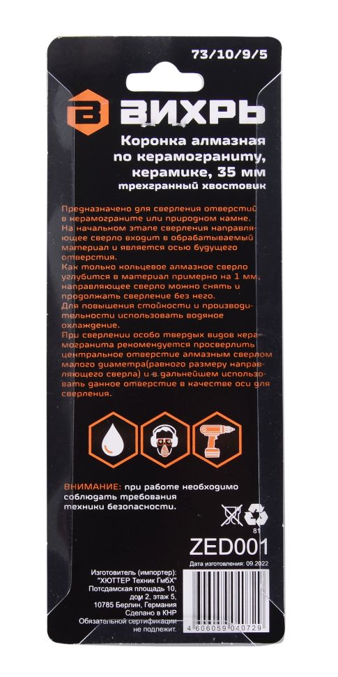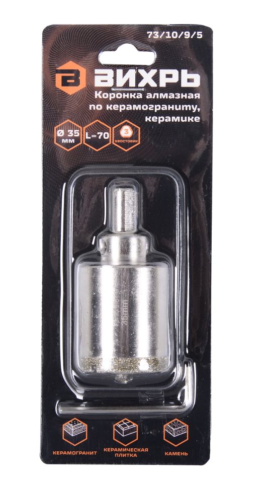 Читать все статьиКоронка алмазная Вихрь по керамограниту/керамике, 35 мм