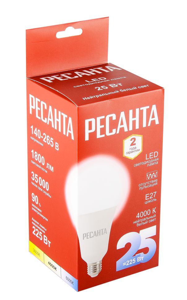 Читать все статьиЛампа светодиодная Ресанта LL-R-A95-25W-230-4K-E27