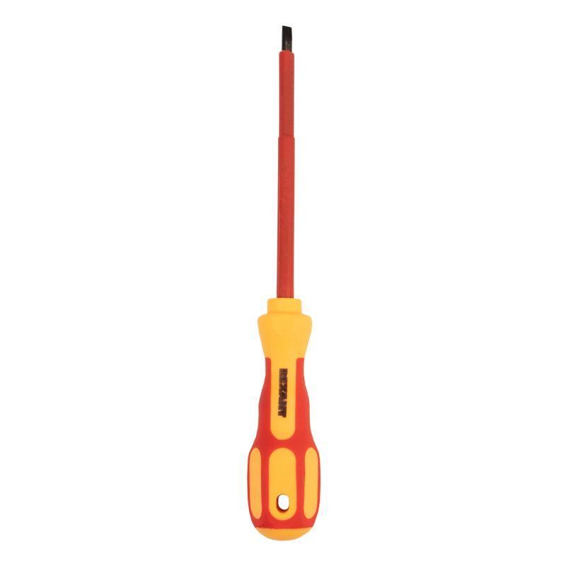 Отвертка арт. 12-4712 REXANT предназначена для электромонтажных работ, монтажа/демонтажа крепежных соединений. Стержень отвертки, выполненный из высококачественной хромованадиевой стали, покрыт специальным изоляционным материалом и оснащен оксидированным намагниченным наконечником. Эргономичная изолированная двухкомпонентная рукоятка делает работу с инструментом легкой и удобной. Шлиц: SL4 Длина: 100мм
