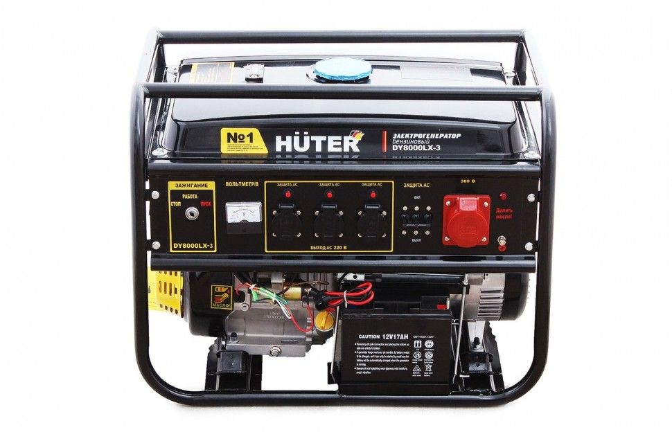 Электрогенератор бензиновый (бензогенератор) - электрическая машина, предназначенная для автономного электроснабжения в повторно кратковременном режиме потребителей бытового и аналогичного назначения, относящихся к классу переносных электроприемников. В качестве первичного двигателя используется карбюраторный двигатель, топливом для которого является неэтилированный бензин. Электрогенератор Huter имеет бытовое назначение.Комплект поставки: Электрогенератор Вилка разъёма Провода и детали лотка аккумуляторной батареи Паспорт (руководство по эксплуатации) УпаковкаВажно: Комплект колес и ручек и АВР поставляются отдельно.На электрогенераторы Huter DY8000LX и DY8000LXA возможна установка дополнительного оборудования – автоматической системы ввода резерва (АВР). Данная система автоматически запускает генератор при отсутствии электроэнергии в сети и автоматически отключает генератор, когда электричество в сети появляется.