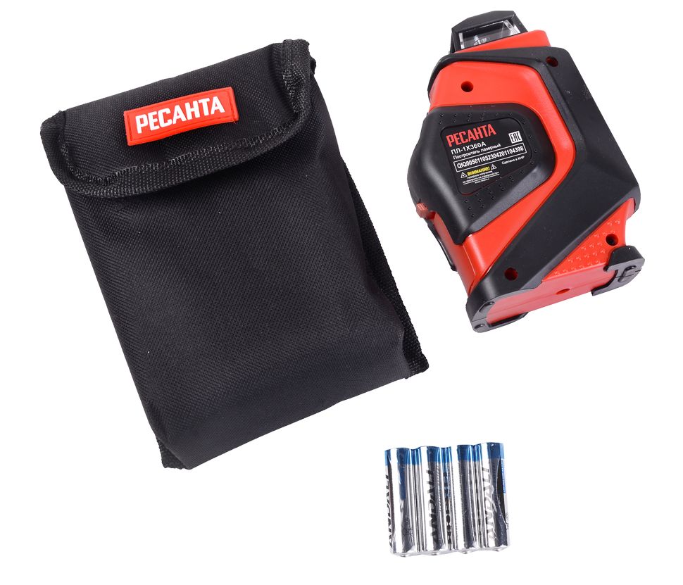 Построитель лазерный – 1 шт, батарейки АА – 4 шт, паспорт (руководство) – 1 шт, сумка для переноски и хранения устройства – 1 шт