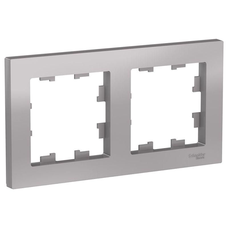 Рамка Systeme Electric (ранее Schneider Electric) серии AtlasDesign в цвете алюминий двухместная. - Устанавливается в вертикальном и горизонтальном положениях. - Лицевые детали из качественного ABS-пластика, устойчивого к царапинам и УФ-излучению. - Позволяет гармонично вписать электроустановочное изделие в интерьер помещения.