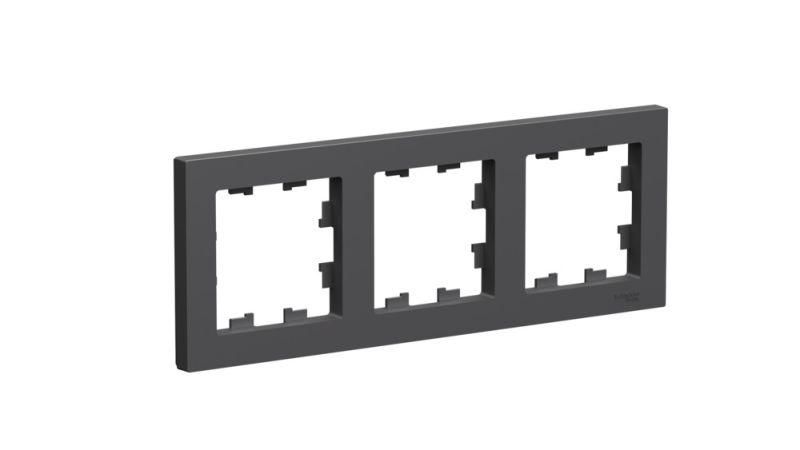 Рамка Systeme Electric (ранее Schneider Electric) серии AtlasDesign в цвете базальт трёхместная. Устанавливается в вертикальном и горизонтальном положениях. Лицевые детали из качественного ABS-пластика, устойчивого к царапинам и УФ-излучению. Позволяет гармонично вписать электроустановочное изделие в интерьер помещения.