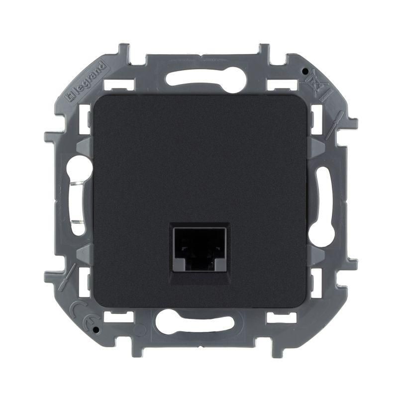 Розетка компьютерная для скрытого монтажа Inspiria, 1 разъем RJ45 категория 5е UTP, цвет "Антрацит". Предназначена для быстрого подключения персональных компьютеров, принтеров, роутеров и другого оборудования к информационным сетям категории 5е со скоростью передачи данных до 1000 Мбит/с. Возможно прямое подключение 1 устройства.