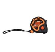 Рулетка измерительная ВИХРЬ 7,5мх25мм изготовлена из ударопрочного пластика с прорезиненным покрытием, защищающим ее от повреждений. Измерительная лента из высококачественной стали с нейлоновым покрытием обеспечит долговечность и стойкость к истиранию шкалы. Есть фиксатор механизма сматывания полотна. Также предусмотрен ремешок для переноски на руке. Длина ленты 7,5 метров, ширина 25 мм.