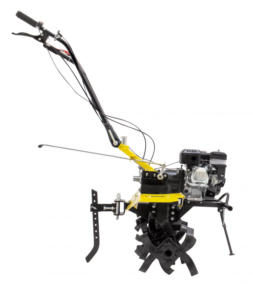 Сельскохозяйственная машина HUTER MK-8000/135 используется для обработки почвы методом культивации, то есть её рыхления без переворота почвы, выравнивания, других операций. Агрегат дает хорошие результаты на приусадебных и фермерских хозяйствах и дачных участках, на ограниченных территориях, междурядьях, на клумбах и возле деревьев. Мотокультиватор укомплектован четырёхтактным двигателем внутреннего сгорания.МК-8000/135 - аналог МК-9500, с менее мощным двигателем 8 л.с.Устройство мотокультиватора - Двигатель. На мотокультиваторах HUTER применяются бензиновые двигатели внутреннего сгорания. Двигатели культиваторов снабжаются автоматическими регуляторами частоты вращения, упрощающими работу оператора. Диапазон номинальной мощности линейки наших культиваторов позволяет выбрать подходящий для любых видов работ. - Сцепление и редуктор обеспечивают передачу вращающего момента от двигателя на рабочий вал. - Система агрегатирования предназначена для сопряжения мотокультиватора с навесным оборудованием, которое устанавливается на рабочую ось или раму. - Система управления. Так как вовремя земляных работ оператор шагает за мотокультиватором, все органы управления должны приводиться в действие только руками оператора. Технические характеристики - Мощность – определяет производительность культиватора. Чем мощнее двигатель установлен на культиватор, тем более жесткую почву и большую глубину он может обрабатывать. - Скорости – позволяют выбрать подходящий диапазон для более качественной обработки почвы, а также облегчают извлечение из земли агрегата после окончания работ посредством задней передачи. - Ширина обработки – зависит от установленных лезвий, может достигать до 85 см со стандартными лезвиями и до 120см с дополнительными. Чем больше ширина обработки, тем эффективней работа культиватора. Но бывает необходимо вспахивать узкие полоски земли, для чего лезвия имеют составное устройство, т.е. есть возможность обрабатывать полосы шириной 30 и 50см. - Глубина обработки – зависит от мощности двигателя и установленных лезвий. Чем больше глубина обработки, тем более качественно и эффективно будет вспахана почва. - Объем топливного бака – определяет время непрерывной работы культиватора без дозаправки.Особенности культиваторов HUTER - Возможность регулировки глубины и ширины обработки почвы. - Защита от низкого уровня масла. При уровне масла ниже допустимого сельскохозяйственные машины и мотокультиваторы Huter не заводятся глохнут, если это случилось во время работы. - Возможность выбрать скорость (для тяжелых и средних культиваторов) и две скорости работы "вперед и назад" для всей линейки культиваторов. - Колесо в передней части мотокультиватора для удобства перемещения либо стояночная опора (сошник) в задней для удобства хранения. - Возможность простой разборки культиватора обеспечивает удобство при транспортировке и хранении.