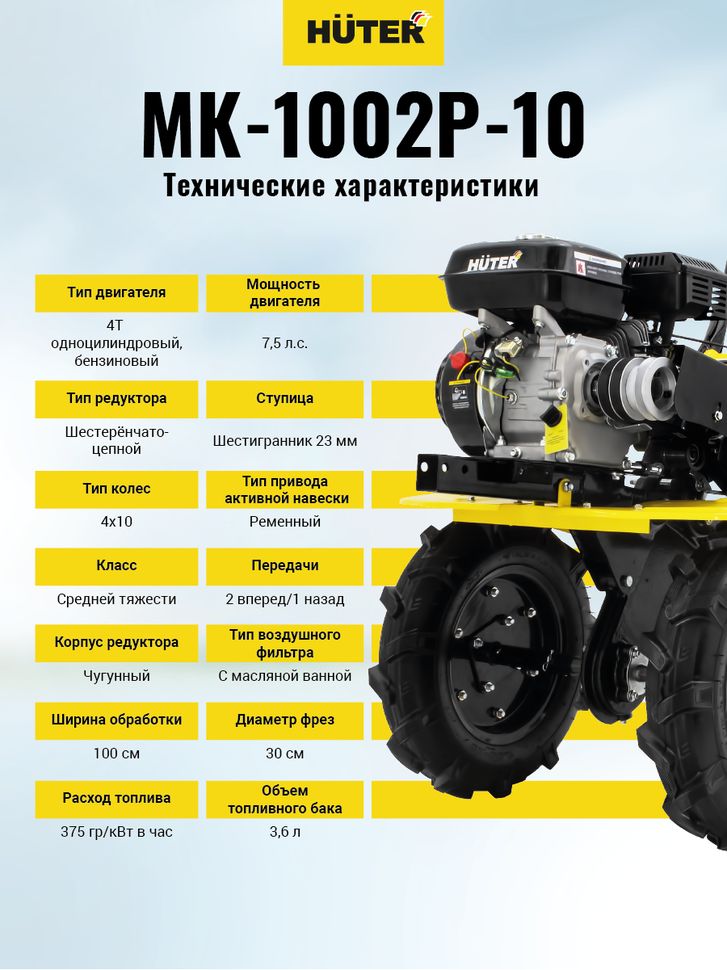 Читать все статьиСельскохозяйственная машина Huter МК-1002Р-10