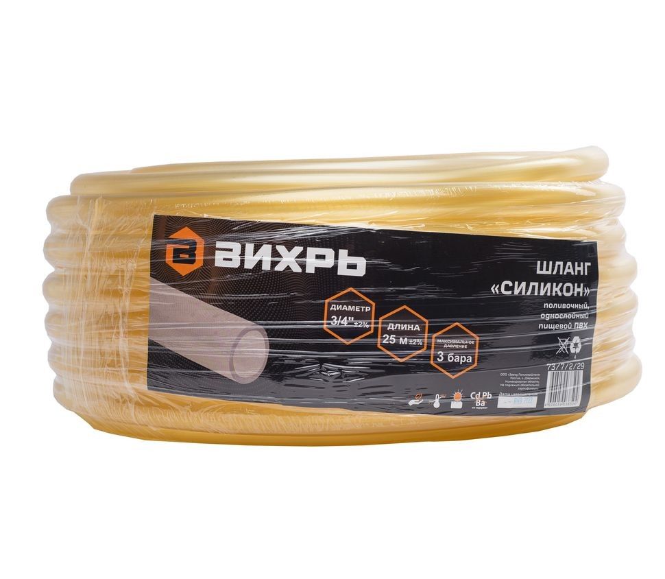 Читать все статьиШланг поливочный «Силикон» однослойный 3/4", 25м (прозрачный) Вихрь