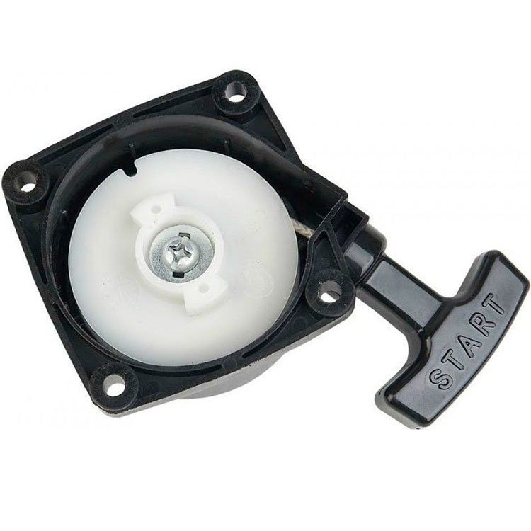 Ручной стартер в сборе для бензиновых триммеров Huter: GGT-1000T/S; GGT-1300T/S; GGT-1500T/S; GGT-1900T/S; GGT-2500T/S. Для раскручивания вала до частоты вращения, которая необходима для запуска двигателя внутреннего сгорания. Запускается в работу специальной рукояткой. Это одна из важных частей двигателя бензотриммера, так как обеспечивает его быстрый и эффективный запуск. Есть шкив типа «бабочка». Тип крепления – на 4 болтах. Корпус из металла в виде квадрата.