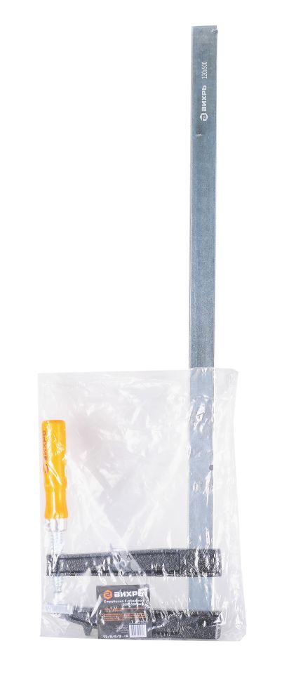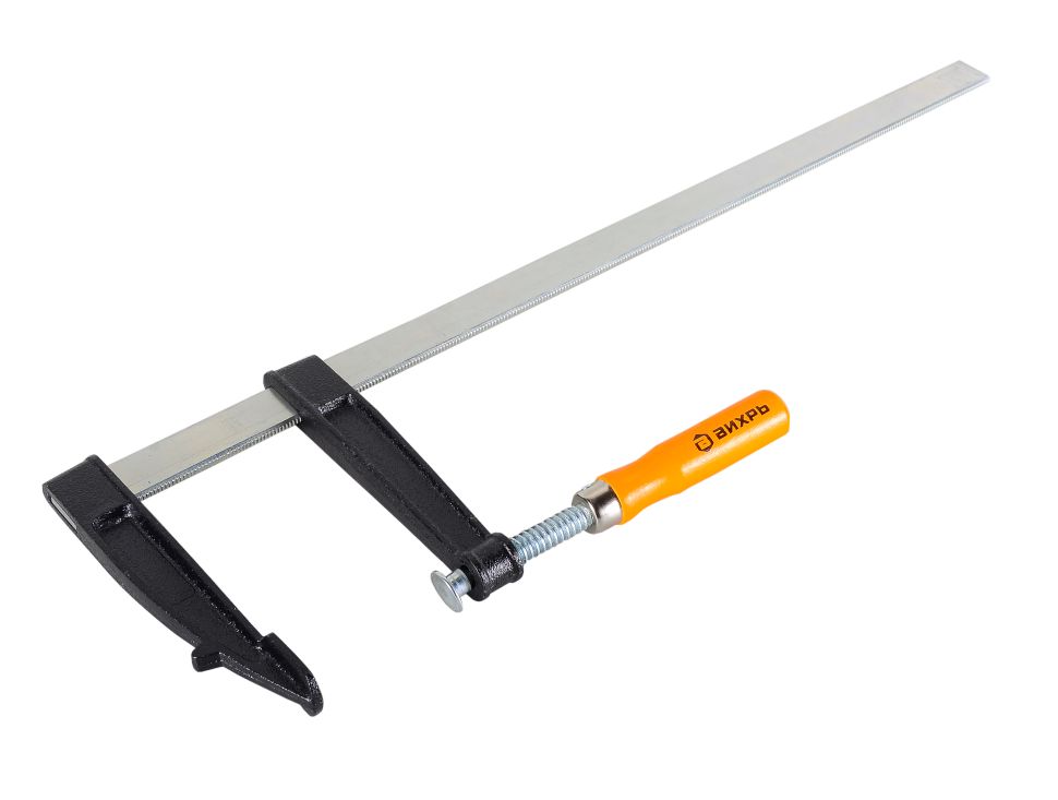 Струбцина Вихрь F-образная 500х120 мм – один из видов вспомогательных инструментов, используемый для фиксации каких-либо деталей в момент обработки или для плотного прижатия их друг к другу при сверлении, склеивании и т.п. Преимущества: Оцинкованный винт устойчив к коррозии; Деревянный рукоятка удобно лежит в руке; Высокопрочная стальная штанга устойчива к деформации при больших нагрузках; Рабочие поверхности захвата оборудованы съёмными пластиковыми накладками, которые предотвращают появление вмятин на скрепляемых деталях.