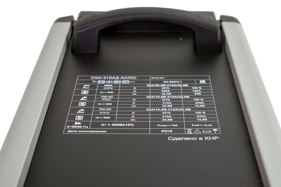 РЕСАНТА САИ-315 АД AC/DC – современная инверторная аргонодуговая установка, позволяющая работать как на постоянном (сварка черных и нержавеющих сталей, меди, титана и пр.), так и на переменном токе (сплавы алюминия, магния, медные сплавы больших толщин и пр.), где требуется удаление окислов со свариваемой поверхности). Использование и развитие инверторной технологии в сварке существенно уменьшает массо-габаритные характеристики. Поэтому наши сварочные аппараты AC/DC легче и более эффективны по сравнению с традиционными. Основным принципом AC/DC установки является использование двойного инвертора и создание полуволн прямоугольной формы, которая делает сварочную дугу более стабильной, увеличивает тепловложение и очищающий эффект. Дополнительный способ сварки: Ручная дуговая сварка штучным покрытым электродом на постоянном токе электродами с рутиловым и основным покрытием (режим ММА). Для сварки электродом защитный газ не требуется.