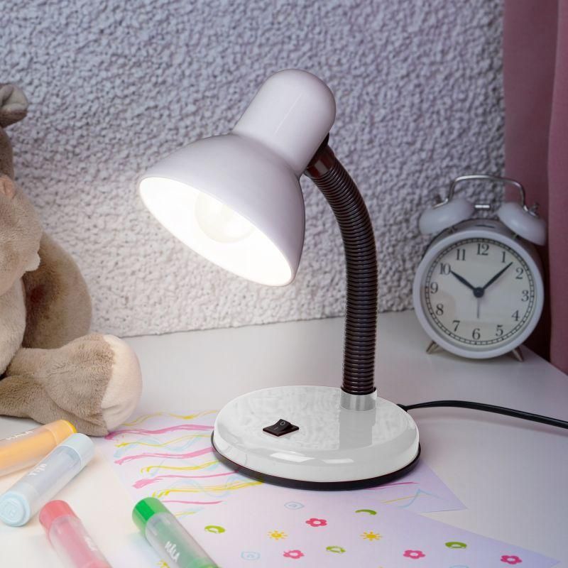 Настольный светильник ЭРА N-211-E27-40W-W может использоваться с лампой накаливания, компактной люминесцентной лампой (КЛЛ) или светодиодной (LED) лампой. У светильника устойчивое основание, металлический плафон. Наклон и поворот плафона в любом направлении для удобного направления света. Поставляется в мягкой упаковке - индивидуальном ПЭ пакете.