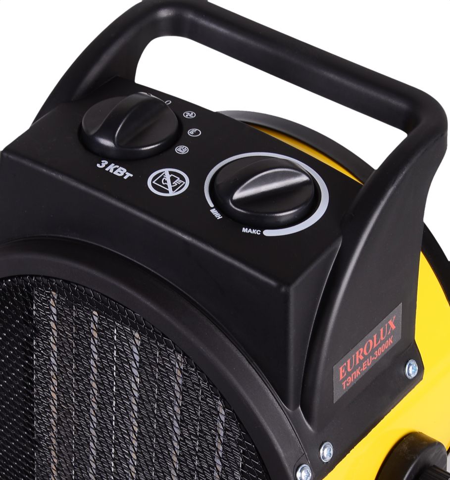 Тепловая пушка ТЭПК-EU-3000K (керам.нагревательный элемент,круглая) Eurolux - отопительный прибор для обогрева помещений. Как правило, они применяются для вентиляции и обогрева производственных, строительных и других нежилых помещений.