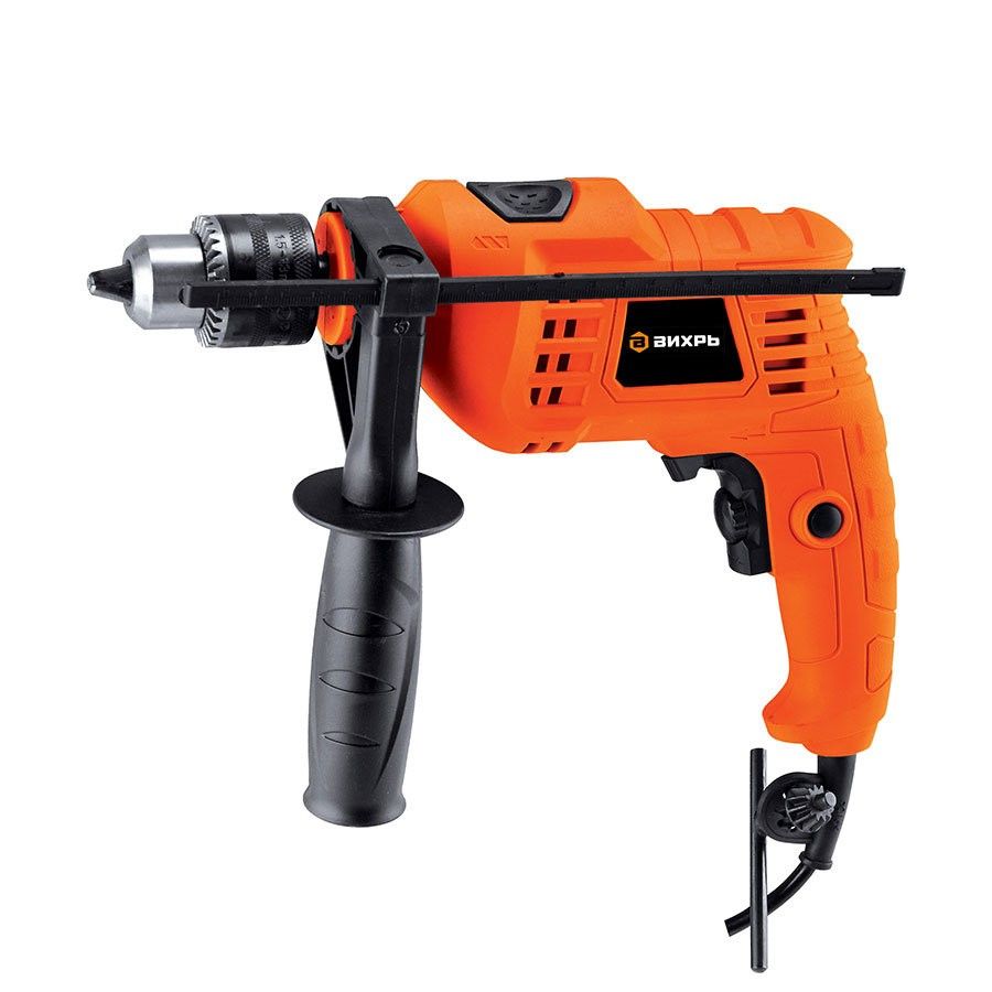 Ударная дрель ВИХРЬ ДУ-500 используется для сверления отверстий в различных материалах при проведении строительных, отделочных, столярных, слесарных и других работ. Помимо сверления дрель может быть использована для заворачивания/отворачивания винтов и шурупов. Кроме того, распространены насадки для шлифования и отрезания, предназначенные для закрепления в патрон дрели. Ударные дрели относятся к технике с приводом от электрического двигателя.Преимущества: - Функция реверса облегчает изъятие сверла из материала в случае застревания. - При помощи регулировки частоты вращения сверла можно настроить инструмент под конкретный материал. - Надежный электрический двигатель обеспечивает производительную и бесперебойную работу. - Рукоятка имеет мягкую накладку и упор в нижней части для надежного захвата дрели во время работы. - Ударный механизм облегчает сверление бетона и кирпичной кладки.