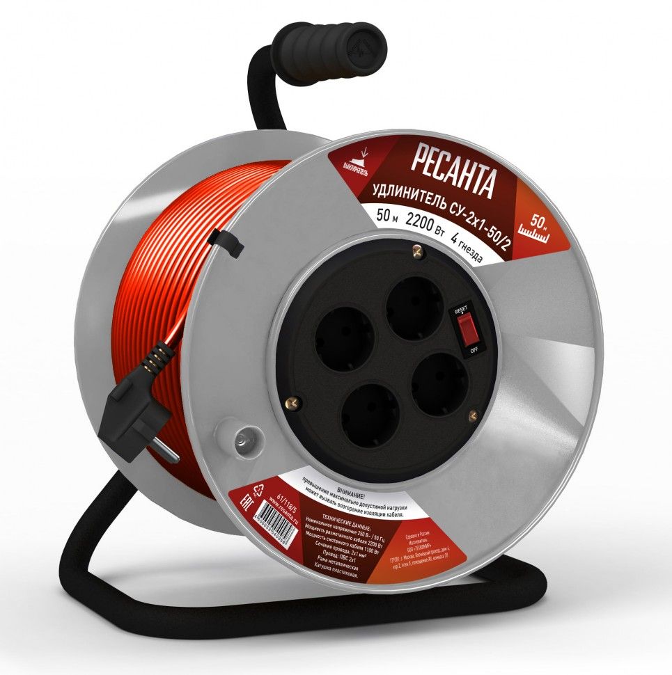 Читать все статьиУдлинитель силовой на катушке Ресанта СУ-2х1-50/2