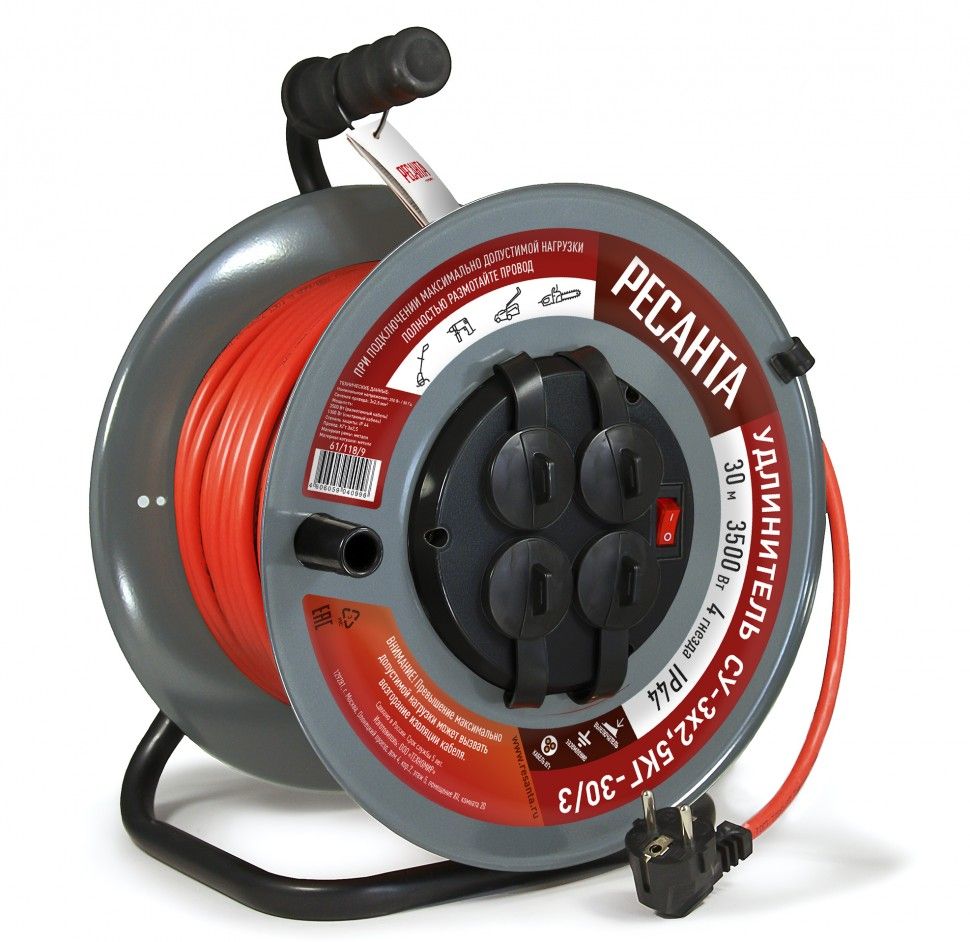 Читать все статьиУдлинитель силовой на металлической катушке Ресанта СУ-3х2,5КГ-30/3