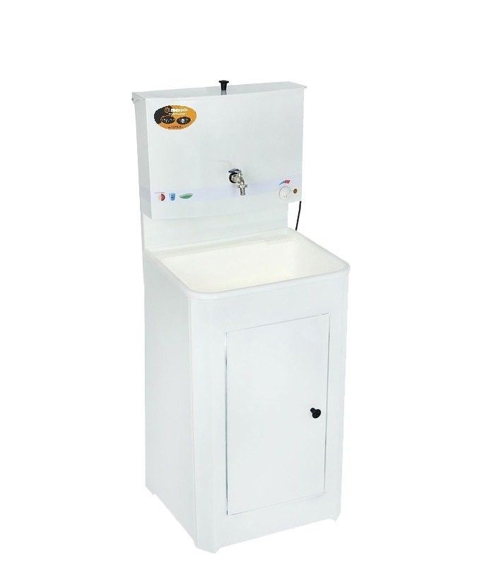 Умывальник с подогревом, белого цвета, с тумбой и пластиковой мойкой, от российского производителя ВИХРЬ. В городах все привыкли к центральному водоснабжению, но на дачах такое благо есть не у всех, что вызывает определённые неудобства, но проблема вполне решаема. При помощи умывальника можно умыться, вымыть не только руки, но ещё и посуду и овощи. Такое устройство просто незаменимо в быту, с ним комфортно и удобно. Умывальники настолько удобны, что могут стать заменой полноценного водопровода. Умывальник ВИХРЬ отличается особой функциональностью, так как его можно установить как внутри дома, так и снаружи. Внутри тумбочки ставиться ведро или шланг для слива воды. Так как в таком умывальнике есть раковина, то его можно свободно использовать для мытья посуды. Умывальник с подогревом наиболее комфортный вариант для дачи, т.к. в случае отсутствия центрального водоснабжения, он поможет решить проблему подачи воды и сделает её горячей. Такой умывальник можно установить в летней кухне, внутри дома, на террасе, то есть там, где имеется розетка для подключения нагревательного элемента. Преимущества: Гарантия 1 год. Наличие термостата (при отсутствии воды, подогрев отключается). Регулятор нагрева воды (можно задать нужную температуру воды). Швы дополнительно обработаны герметиком. Оцинкованный бак 17 литров. Хромированный кран. Две поперечные планки на задней части тумбы для дополнительной устойчивости. Магниты на дверце тумбы. Порошковая покраска дает дополнительную (прочность, экологичность, защита от коррозии, электроизоляция, термозащита от -60 до +150 0С). Комплект поставки: Электроводонагреватель - 1 шт. Раковина - 1 шт. Боковина задняя - 2 шт. Стяжка задняя - 2 шт. Тумба с дверью - 1 шт. Кран, прокладки, слив, метизы, пробка сливная (установлена в баке) - 1 (комплект). Руководство по эксплуатации - 1 шт. Упаковка - 1 шт.
