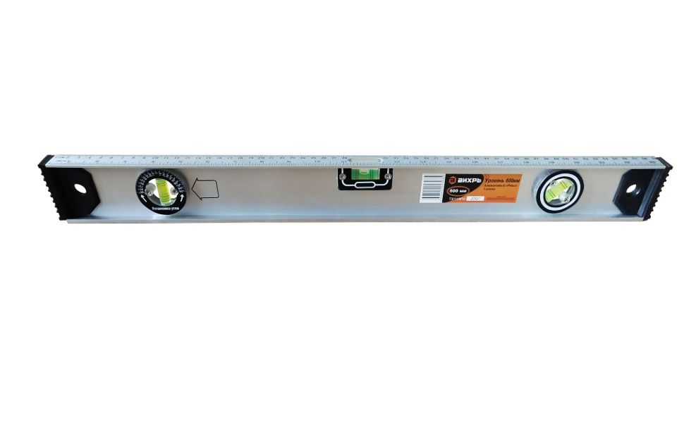 Уровень алюминиевый "Рельс", 1000 мм, 3 глазка (1 поворотный) Вихрь - измерительный инструмент при строительных, ремонтных и отделочных работах для поиска и исправления отклонения поверхностей. Корпус прочный и износостойкий, изготовлен из алюминия. Фрезерованная рабочая поверхность служит для уменьшения возможной погрешности при измерениях. Длина уровня 1000 мм.Особенности: Уровень изготовлен из жесткого двутаврового алюминиевого профиля с анодированным покрытием. В подошву уровня встроен магнит для фиксации на металлических поверхностях. Модель имеет три мерительных глазка для проверки отклонений по горизонтали, вертикали и один из глазков является поворотным и позволяет использовать уровень для выверки произвольных углов. Использование электронного контроля при установке пузырьковых ампул обеспечивает надежность инструмента при эксплуатации. Точность измерений – 1 мм/м (0,057 градуса).