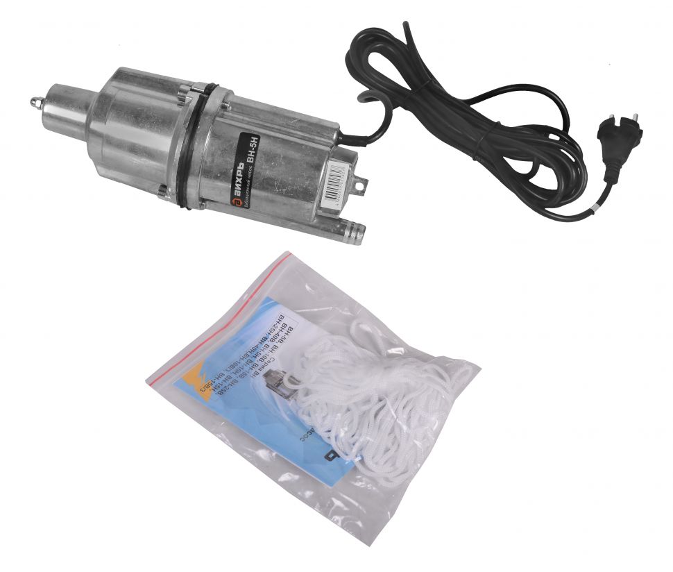 Вибрационный насос Вихрь прост в использовании. Агрегат применяется для перекачивания воды из резервуаров и колодцев диаметром более 110 мм. Электрический двигатель мощностью 280 Вт дает напор до 72 метров и производительность до 18 л/мин. Разборные части крепко стянуты болтами. Насос требователен к качеству воды: вода должна быть чистая, без примесей и песка. Минимальное расстояние от дна колодца до насоса: 1 м. Максимальная глубина погружения составляет 3 метра.Комплектность 1. Электронасос со шнуром питания – 1шт 2. Руководство по эксплуатации - 1шт. 3. Упаковочная коробка – 1шт 4. Трос (шнур) – 1шт.